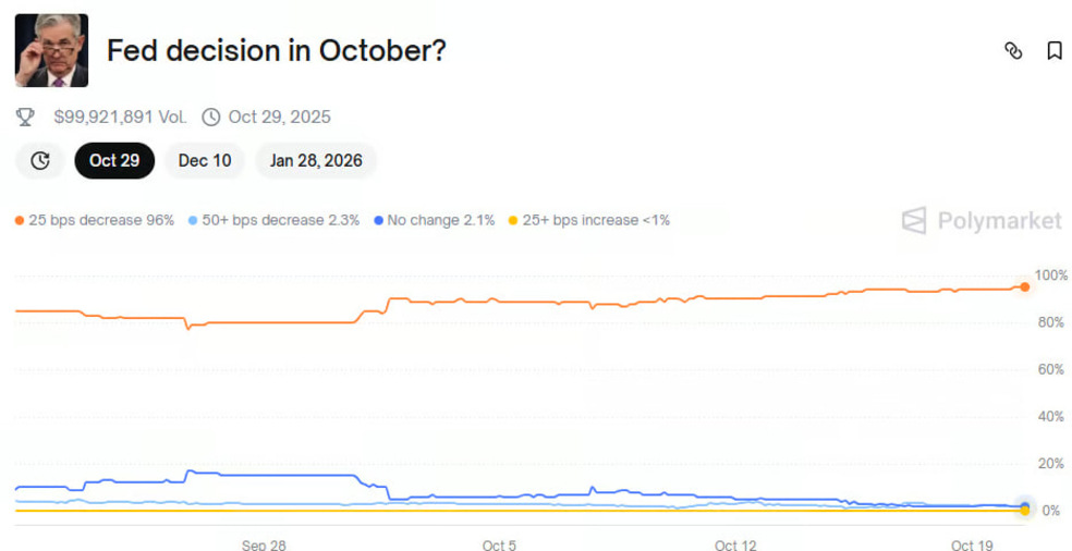 پیش‌بینی کاهش نرخ بهره توسط فدرال رزرو در ماه اکتبر | منبع: PolyMarket